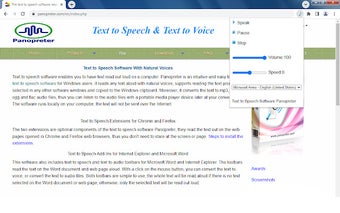 Phần mở rộng Text to Speech của Panopreter.com là một tiện ích miễn phí cho Chrome cho phép người dùng đọc văn bản trên trang web bằng giọng nói tự nhiên. Phần mở rộng này hoàn hảo cho những người muốn nghe nội dung của một trang web trong khi đa nhiệm hoặc di chuyển, mà không cần phải nhìn liên tục vào màn hình.